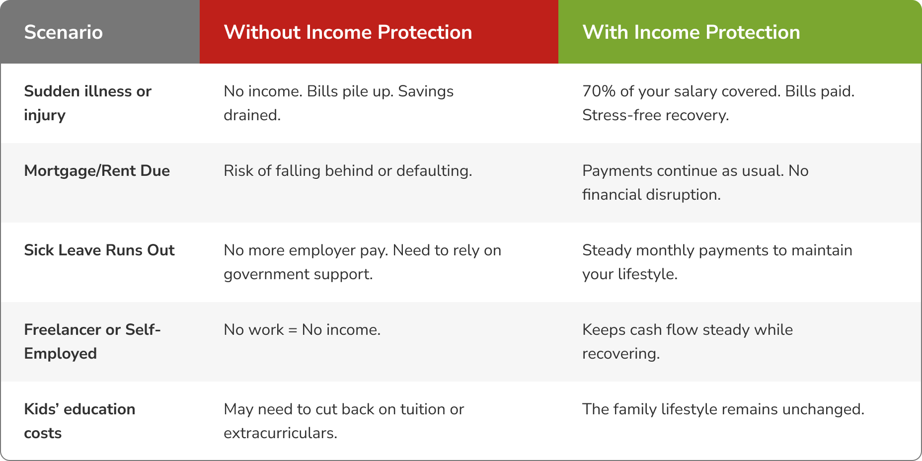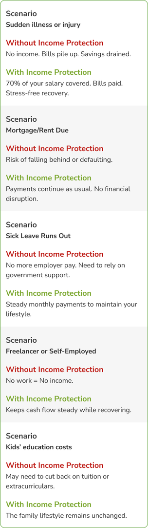 Income Protection kicks in when sick leave runs out, ensuring financial stability for months - or even years - if needed.